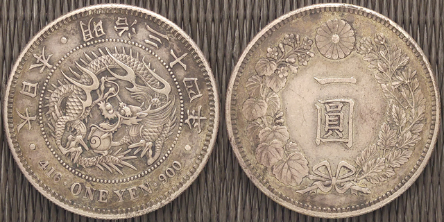 Obverse:大日本 · 明治三十四年-大正三年 · 416·ONE YEN·900 ·